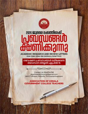 The research journal, Academic Research and Review Letters, published by AKGCT (Association of Kerala Government College Teachers), began its publication in January 2018. Since then, it has been published as a biannual journal with two issues per year, appearing consistently in January and July. In addition to English, the journal gives special importance to research papers in Indian languages like Malayalam, Hindi, and Sanskrit. Its main goal is to spread new knowledge across all subjects and languages, which is why it is envisioned as a Multidisciplinary and Multilingual journal. The committee members and the editorial board are committed to publishing high-quality papers on time.